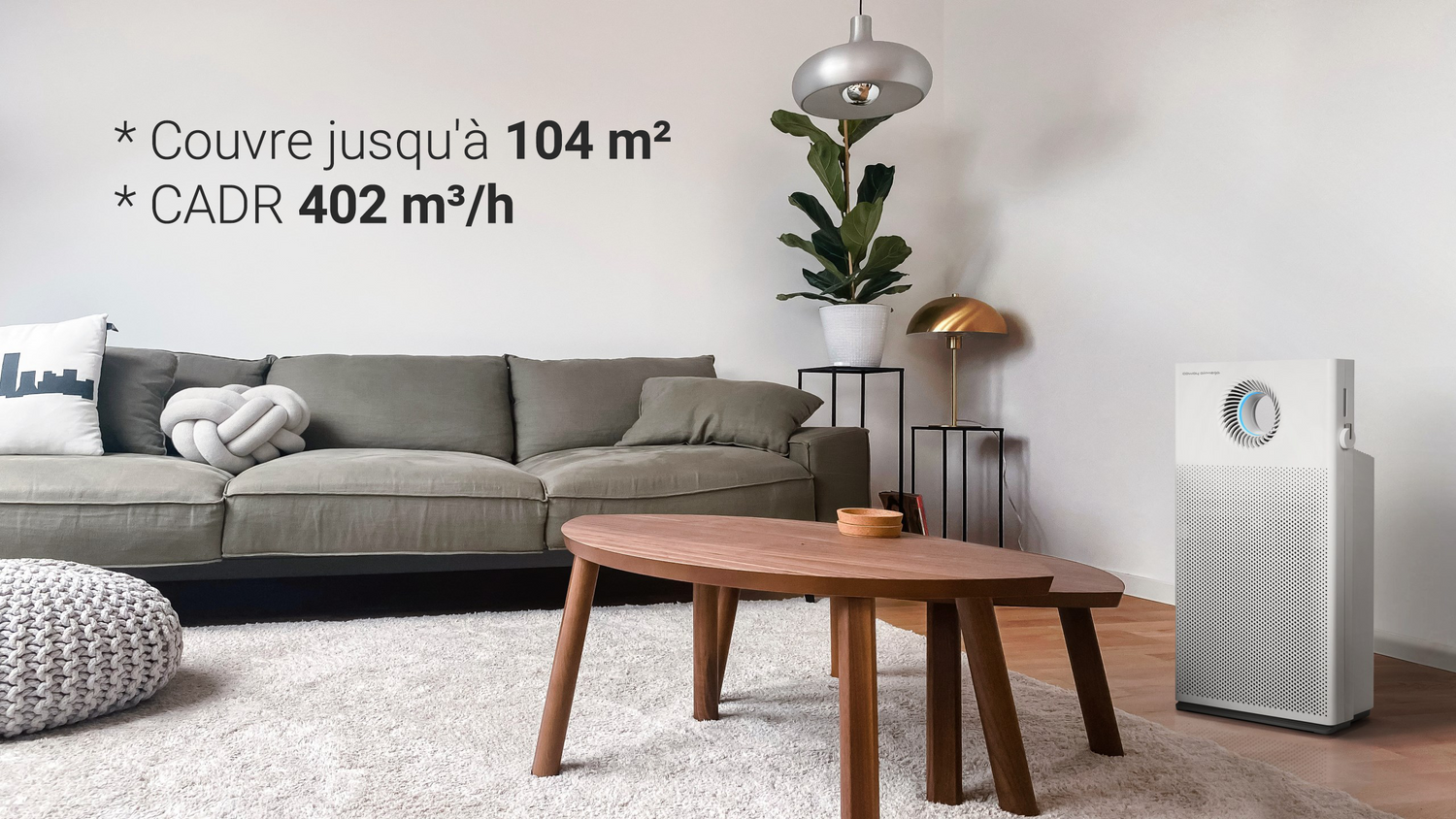 CADR (Débit d'Air Propre) : 402 m3/h